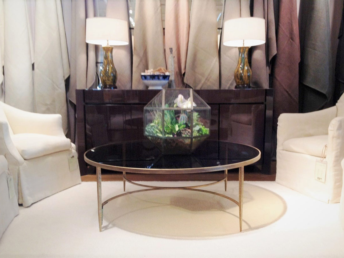 Dimensions: 48″ dia. x 18″ H Finish Shown: Aged Brass Notes: Shown with custom bronze glass
