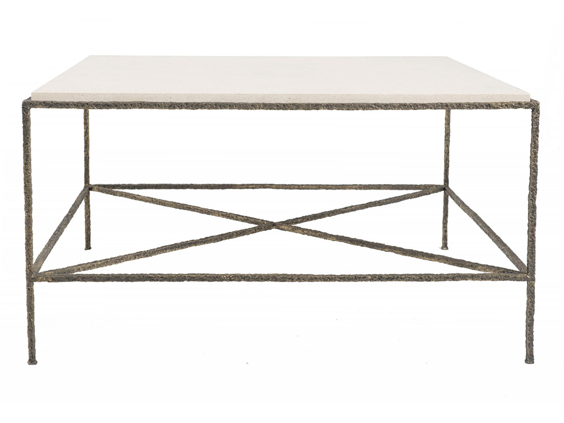 Dimensions: 36″x36″x18″H Finish Shown: Statuary Bronze Notes: Hand forged Rock Creek texture; shown with Champagne limestone