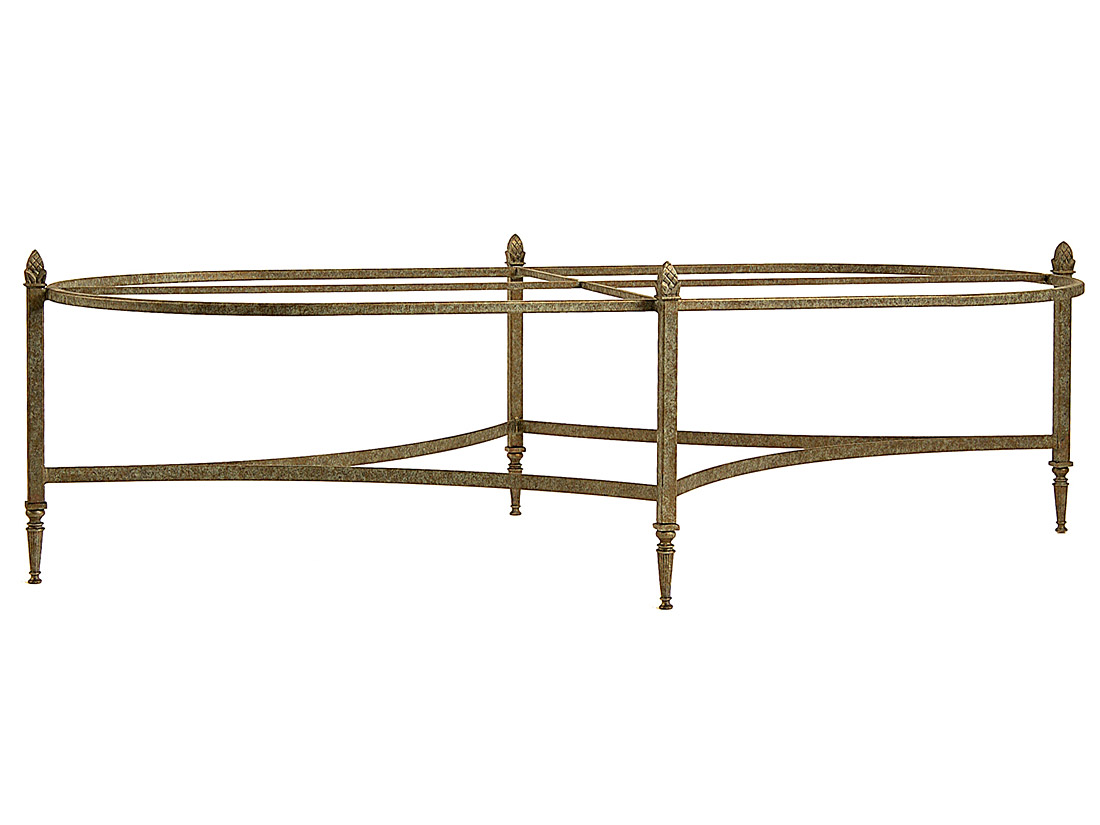 Dimensions: 48″ x 28″ x 18″ H Finish Shown: Sage Bronze Notes: Shown in custom size: 70″ x 32″ x 18″ H; Stretchers in top frame to support limestone top