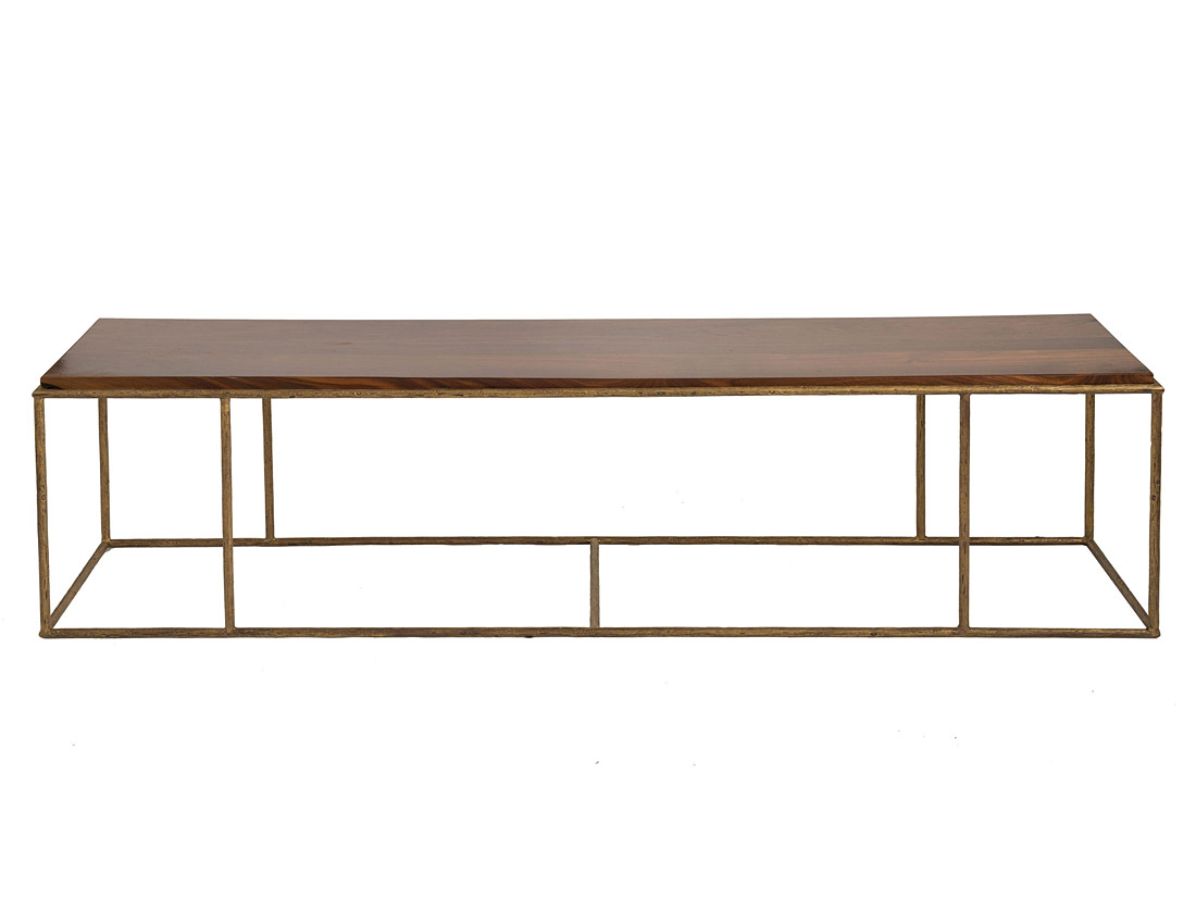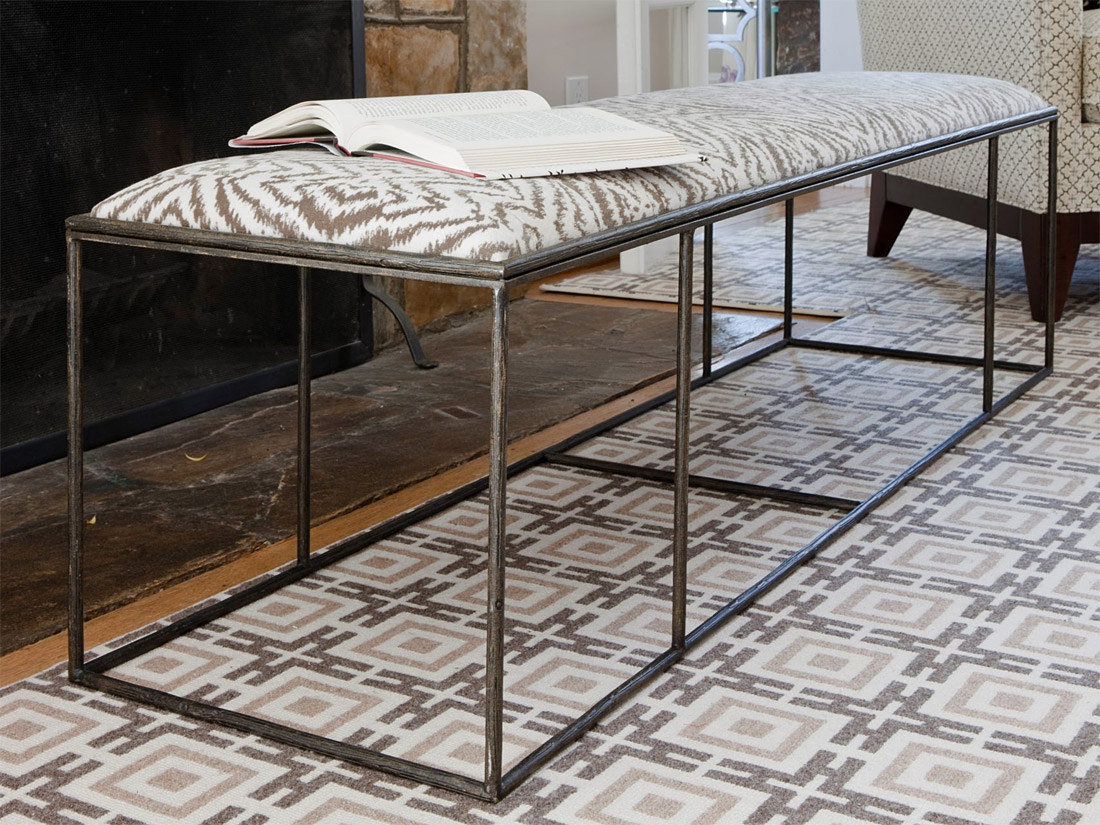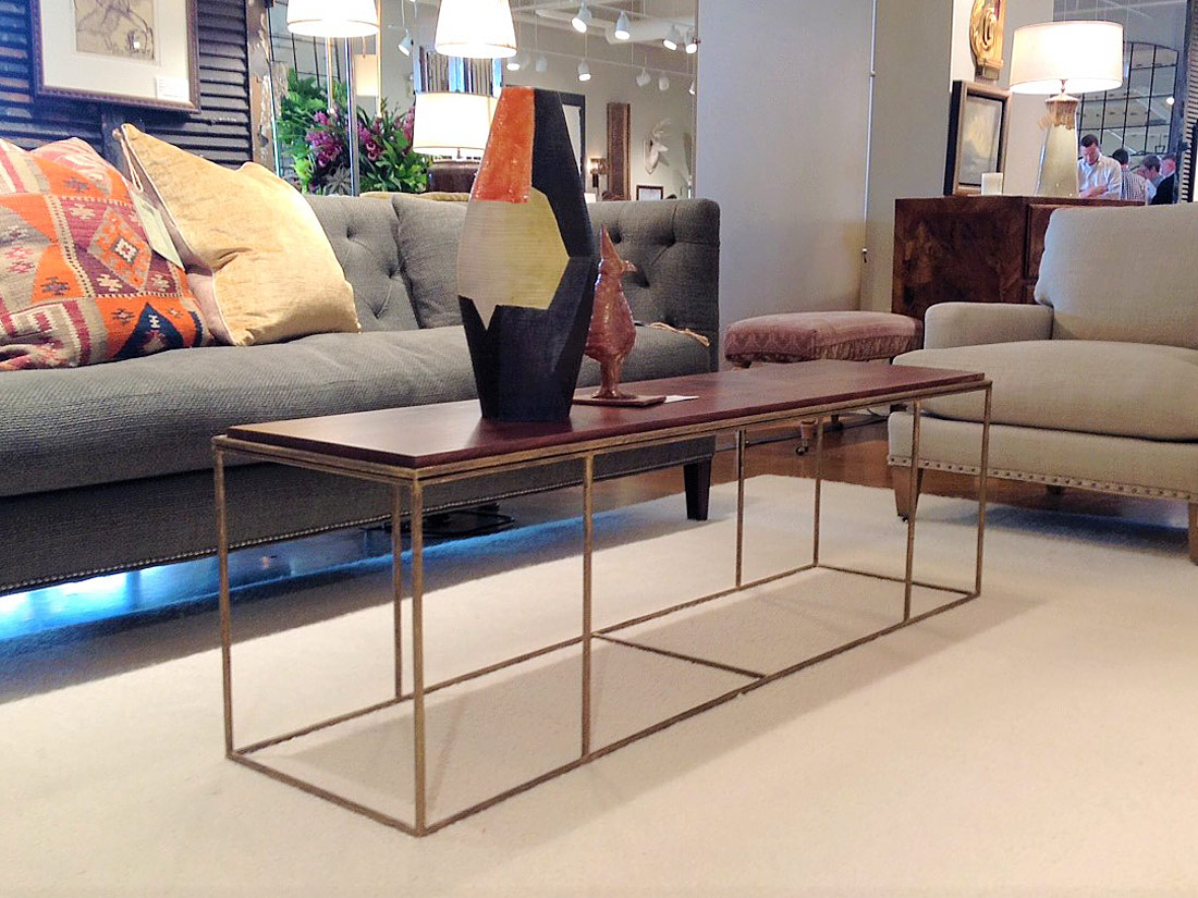 Dimensions: 60” x 16” x 18” H Finish Shown: Aged Brass Notes: Shown with custom walnut top Design Credit: McDowell table as an upholstered bench –Roxanne Lumme Interiors