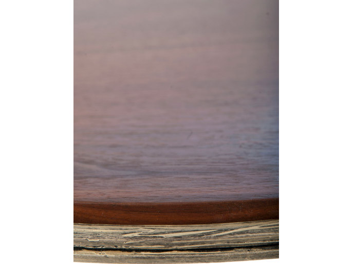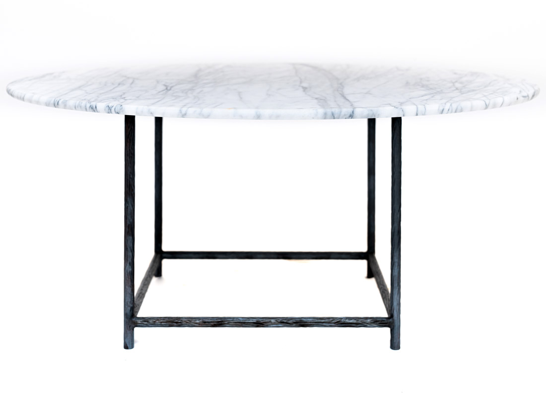 Dimensions: 36″ dia. x 18″ H Finish Shown: Celestial Notes: Shown with walnut top. Iron is forged in a textured bark pattern.