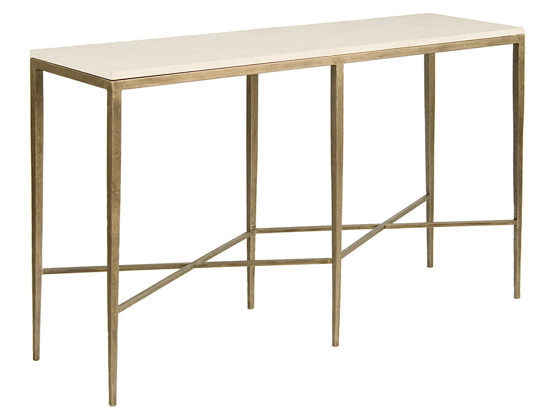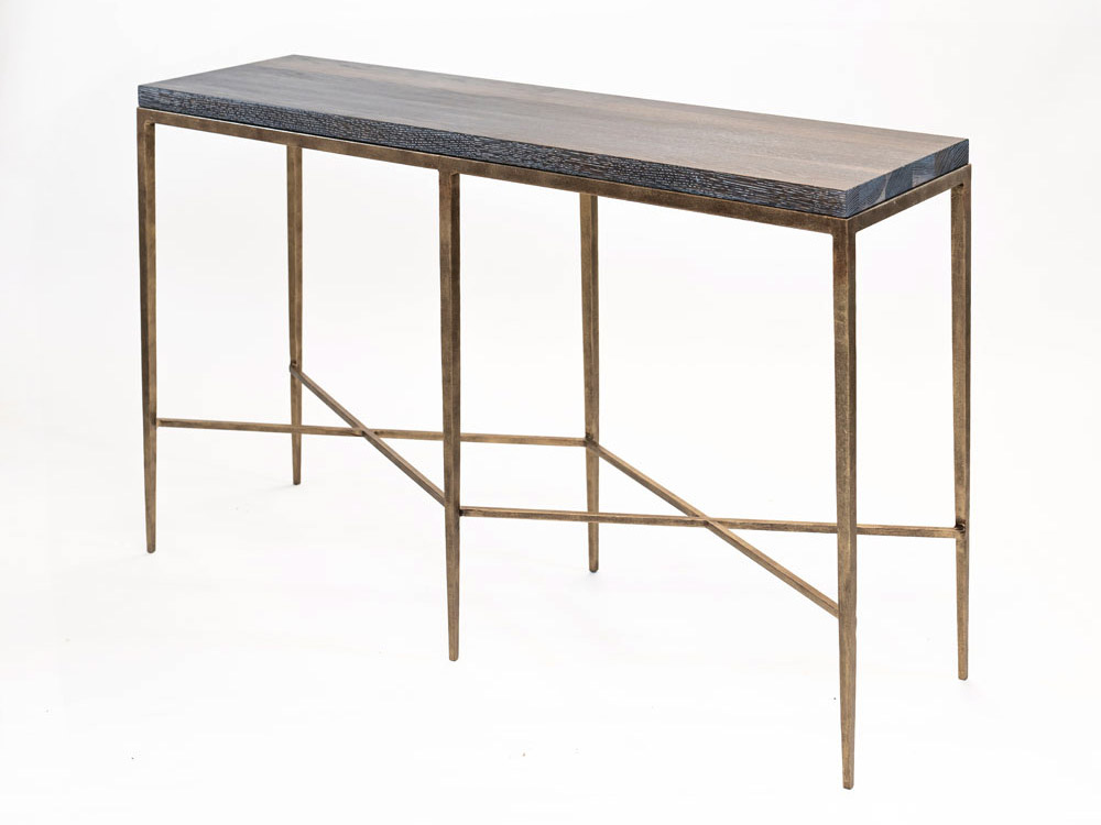 Dimensions: 56″ x 16″ x 32″ H; Finish Shown: Zinc Notes: Detail shows custom oak tabletop