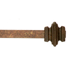 Dimensions: 2.5″ w x 2″ h Finish Shown: Heart Gold rod/ Black Bronze finial